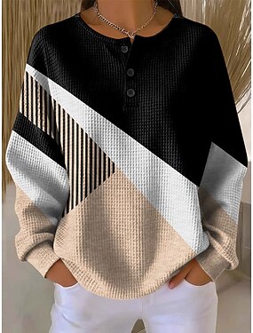 Per donna Felpe con cappuccio Bottoni Grafico Geometrico Blocco di colori Moda Casual Stampa Manica Lunga Girocollo Top Regolari Casuale Streetwear Blu Viola Verde Kaki Autunno Inverno