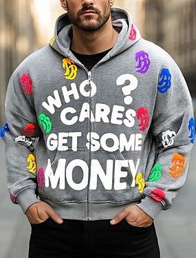 Per uomo Lettera Felpa con Cappuccio Moda Quotidiano Casual Manica Lunga Con Cappuccio All'aperto Vacanza Abbigliamento casual alla moda Nero Rosso Azzurro cielo Viola Grigio scuro Con zip Tasca