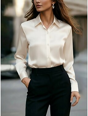 Per donna Camicia Camicia button-down Camicia casual Blusa Bottoni Semplice Elegante Classico Moderno Manica Lunga Colletto a Camicia Top Regolari Quotidiano Ferie Uscire Nero Bianco Viola Albicocca