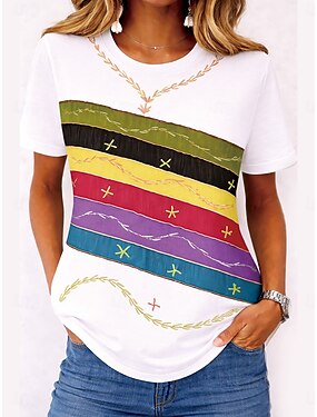 Carnevale Martedì grasso Per donna Maglietta Stampato Grafico Stella A righe Elegante Classico Casual Manica Corta Girocollo Top Regolari Quotidiano Sportivo Uscire Bianco Viola Estate Primavera