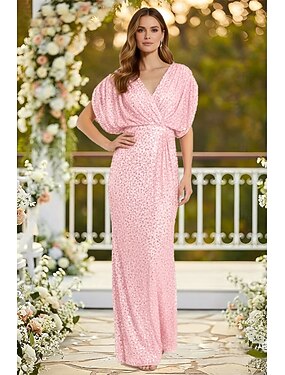 Tubino Colonna Lunghezza al pavimento Abito da invitata a nozze Abito Formale Abito da sera Abiti da Ballo Elegante Manica Corta Scollo a V Balli di fine anno Formale Con Paillettes Velluto Shiena