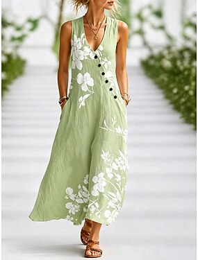 Abiti Quinceanera A-Line Floor Length Festa Elegante Senza Maniche Collo Quadrato Abito da Prom Sera Festa con Stampa Floreale e Spacco