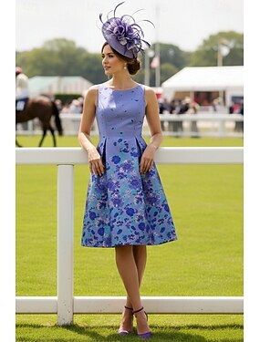 Linea ad A Lunghezza al ginocchio Abito Derby Abito formale Elegante Senza Maniche Girocollo Formale Derby del Kentucky con Blocco di Colore