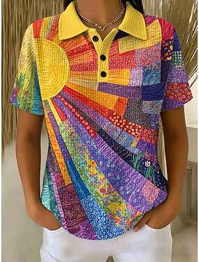 Per donna Maglietta Stampato Grafico Geometrico Elegante Classico Casual Manica Corta Colletto Polo Top Regolari Casuale Quotidiano Sportivo Blu Viola Arancione Verde Estate Primavera