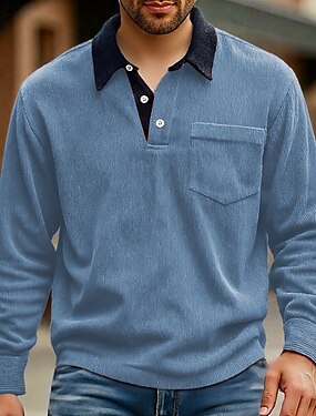 Per uomo Camicia di Velluto a Coste Maglia da golf Lavoro Casuale Bavero Manica Lunga Essenziale Moderno Blocco di colori Tasca Bottoni Primavera Autunno Vestibilità regolare Nero Bianco Rosso Blu