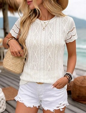 Per donna T-shirt con ricamo a occhielli Maglietta a Maglia Taglio Tinta unica Grafico Elegante Sexy Senza Maniche Girocollo Top corti Quotidiano Uscire Abbigliamento da vacanza Albicocca Estate