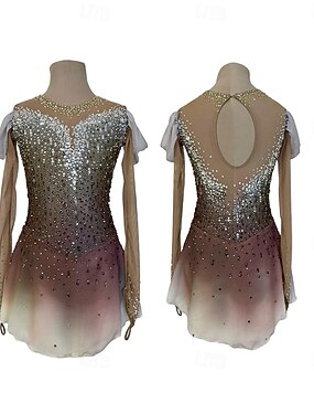 Vestito da pattinaggio artistico Per donna Da ragazza Pattinaggio sul ghiaccio Vestiti Caffè Foro per pollice tintura sfumata Elevata elasticità Professionale Competizione Vestiti da pattinaggio sul
