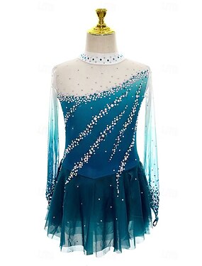 Abito da pattinaggio artistico Per donna Pattinaggio sul ghiaccio Vestito Blu+Blu chiaro Elasticizzato Professionale Competizione Vestiti da pattinaggio sul ghiaccio Manica Lunga Pattinaggio su