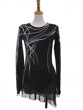 Abito da pattinaggio artistico Per donna Ragazze Pattinaggio sul ghiaccio Vestito Nero Patchwork Foro per il pollice Rete Spandex Elasticizzato Allenamento Professionale Competizione Vestiti da