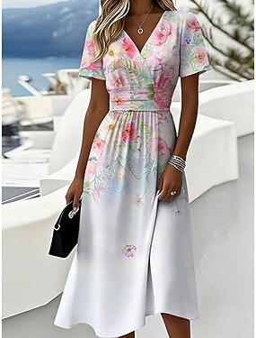 Per donna Abito Midi Vestito Estivo Abito a trapezio Casual Feste Ferie Vestibilità regolare Floreale Grafico Manica Corta Scollo a V Blu Bianco Rosa Verde Estate Primavera