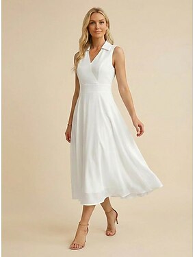 Per donna Abito Midi Vestito in Chiffon Abito da Cocktail Elegante Moda Moderno Feste Weekend Vestibilità regolare Semplice Senza Maniche Scollo a V Bianco Estate Primavera
