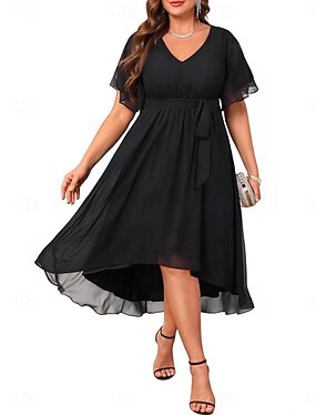 Per donna Abito Midi Vestito in Chiffon Vestito Casual Elegante Moda Moderno All'aperto Vacanza Uscire Vestibilità regolare Semplice Manica Corta Scollo a V Nero Rosa Blu scuro Estate Primavera