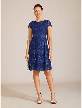 Per donna Abito maxi Tubino Elegante Ospite di nozze Cocktail party Data Paillettes Pizzo Floreale Manica Corta Scollo a V Blu marino