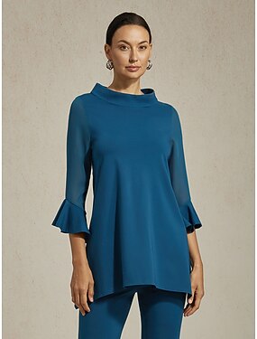 camicetta da donna blu scuro in chiffon modal vestibilità attillata maniche trasparenti elegante leggera traspirante ufficio cena appuntamento casual quotidiano primavera estate autunno