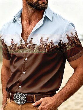 Per uomo Cowboy Color-blocking Camicia Camicia Western Camicia da cowboy Manica Corta Vintage Retrò All'aperto Vacanza Abbigliamento da lavoro Estate Primavera Collo ripiegato Stampa 3D Camicia tipo