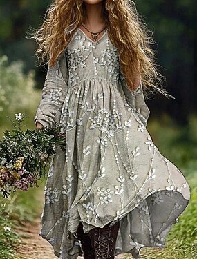 Per donna Abito lungo maxi Abito Vintage Vestito Casual Vintage Quotidiano All'aperto Vacanza Vestibilità regolare Floreale Manica Lunga Scollo a V Verde Primavera Autunno