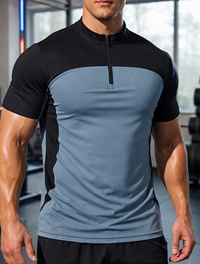 Per uomo Blocco di colori T-shirt da corsa Maglia a compressione Maglia atletica Sport in alto Estate Patchwork Cerniera a un quarto Manica Corta Asciugatura Rapida Traspirante Allenamento in
