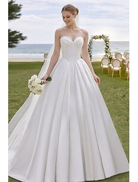Abiti da sposa Linea ad A Scollo a Cuore Senza Maniche Strascico da Corte Raso Abiti da sposa Abiti da sposa Con Tinta unita