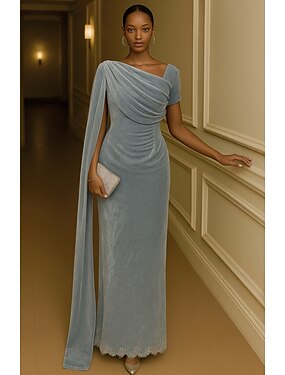 Tubino Colonna Lunghezza al pavimento Abiti da Ballo Abito da Sera Da principessa Abito formale Elegante Scintillante Stile Celebrità Senza Maniche Monospalla Festa in giardino Matrimonio Velluto con