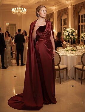 Tubino Colonna Lunghezza al pavimento Abito da Sera Abito da ballo con sopragonna Abito formale Elegante Vintage Manica Lunga Collo quadrato Matrimonio Formale Tasca Raso con Scialle