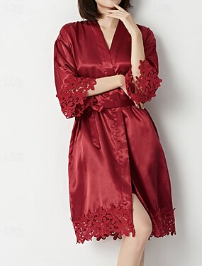 Per donna Accappatoio Casual Morbido Raso Colore Puro Pizzo Quotidiano Casa Da letto Mezza Manica Scollo a V Bianco Champagne Rosa Vino Estate Vestibilità comoda