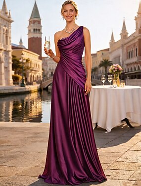 Tubino Colonna Lunghezza al pavimento Abiti da Ballo Abito da Sera Da principessa Abito formale Elegante Senza Maniche Monospalla Serata Formale Invitato a matrimonio autunnale Raso Senza schiena con