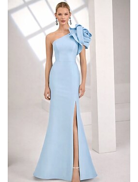 Sirena Tromba Lunghezza al pavimento Abito da Sera Da principessa Abito formale Elegante Setoso Senza Maniche Senza Spalle Matrimonio Formale Raso con Fiore sulla Spalla