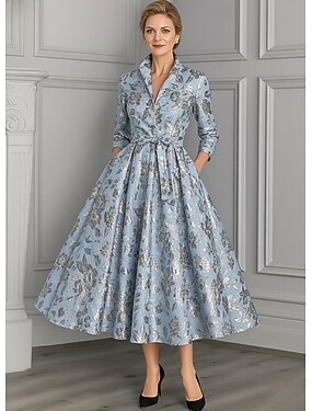 Linea ad A Lunghezza alla caviglia Vestito da Festa Abito da Cocktail Abito da invitata a nozze Abito da cerimonia per signora Manica 3/4 Collo gioiello Elegante Taglie Forti Ospite di nozze