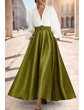 Per donna Abito da smoking Linea ad A Matrimonio Formale Ospite di nozze Raso Elegante Vintage Manica 3/4 plissettata Lunghezza alla caviglia Bavero sciallato
