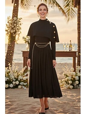 Due Pezzi Linea ad A Lunghezza alla caviglia Abito da invitata a nozze Abiti per invitati a matrimoni Elegante Manica Lunga Collo Alto Formale con Bottoni