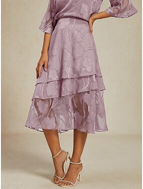 Due Pezzi Set di Abiti Lunghezza alla caviglia Abito da invitata a nozze Abito da cerimonia per signora Manica Lunga Girocollo Elegante Ospite di nozze Chiesa Chiffon con Pizzo Ricamo