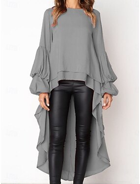 Per donna Camicia Blusa Top in chiffon Orlo asimmetrico Semplice Elegante Essenziale Classico Manica Lunga Girocollo Top Regolari Casuale Quotidiano Ferie Blu marino Arancione Grigio Estate Primavera