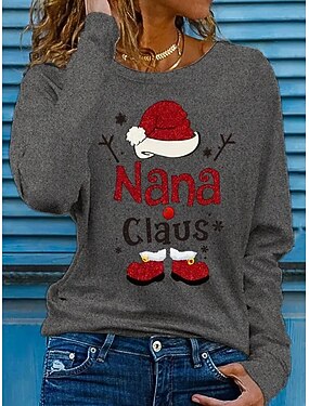 Natale Per donna Maglietta Grafico Lettera Natale Vintage Moda Elegante Manica Lunga Girocollo Top Regolari Quotidiano Weekend Stampato Blu Nero Bianco Rosa Estate Primavera Autunno Inverno