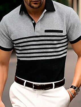 Per uomo Maglia da golf Polo a Maglia Waffle Casuale Affari Classico Manica Corta Moda Moderno Tinta unica A righe Bottoni Estate Primavera Vestibilità regolare Bianco Blu reale Verde Cachi Grigio