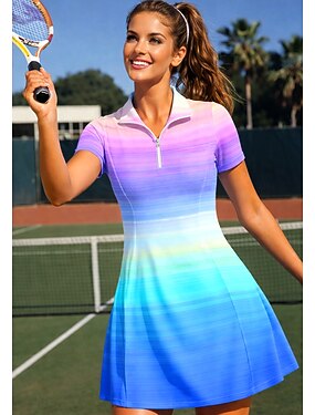 Per donna Geometrico Sfumatura A righe Abito da tennis Abito sportivo Manica Corta Stampato Traspirante Tennis Golf Badminton Colletto Colletto Polo Vestito Bianco e blu Abbigliamento da tennis