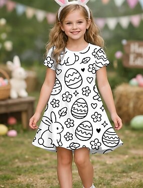 ragazze' 3D Pop art Vestito Manica corta Stampa 3D Estate Primavera Da mare Giornaliero Per eventi stile sveglio Informale Dolce Bambino 3-12 anni Abito linea A Sopra il ginocchio Standard