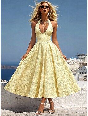 Per donna Abito Midi Abito a corsetto Abito a trapezio Vestito all'americana Elegante Festa cocktail All'aperto Feste Ospite di nozze Senza schiena Vestibilità regolare Tinta unica Senza Maniche