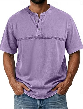 Per uomo Maglia Henley Camicia 100% cotone lavaggio acido Manica Corta Semplice Retrò Vintage Casual Stile Vintage Tinto in capo Jeans Henley Casuale Estate Primavera Tutte le stagioni Blu Viola Verde