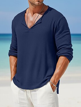 Per uomo Camicia di lino Maglietta Camicia a Maniche Lunghe Manica Lunga Scollo a V Estate Primavera & Autunno Tinta unica Vintage Moda Casual Scollo a V Puro Casuale Quotidiano Lavoro Nero Bianco