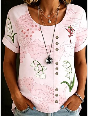 Per donna Blusa Bottoni Stampato Floreale Grafico Vintage Tropicale Elegante Manica Corta Girocollo Top Regolari Ferie Blu Rosa Marrone Estate Primavera