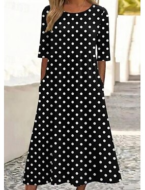 Per donna Abito lungo maxi Abito maxi Finto cotone e lino Abito Camicia Vestito Estivo Vestito a caftano Vacanza Essenziale Moderno Quotidiano Weekend Vestibilità comoda Semplice Manica 3/4 Scollo a V
