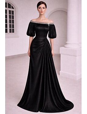 Linea ad A Lunghezza al pavimento Abito da Sera Abito da ballo con sopragonna Abito formale Elegante Scintillante Manica 3/4 Senza Spalle Matrimonio Formale Raso Taffetà con Strass Glitter Con perline