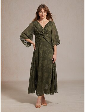 Per donna Abito maxi Vestito in Chiffon Elegante Quotidiano Spiaggia Vacanza Pizzo Vestibilità regolare Floreale Manica 3/4 Scollo a V Verde oliva