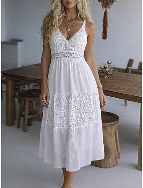 Per donna Abito Midi Abito a trapezio Abito Estivo Casual Quotidiano Vestibilità regolare Semplice Senza Maniche Scollo a V Bianco Estate