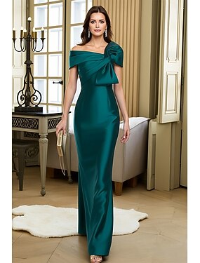 Tubino Colonna Lunghezza al pavimento Abito in Raso Vestito da Festa Abito da Cocktail Abito da cerimonia per signora Manica Corta Monospalla Elegante Formale Ospite di nozze Ricevimento di matrimonio