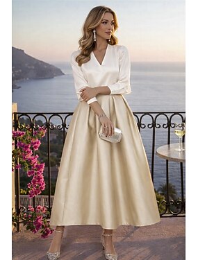 Linea ad A Lunghezza alla caviglia Abiti da Cocktail Elegante Spacco Alto Manica 3/4 Colletto a Camicia Formale Tasca Raso con Applicazioni