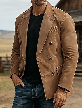 Per uomo Blazer in finta pelle scamosciata Giacca blazer Casuale Affari Lavoro Elegante Vintage Autunno Inverno Poliestere Tinta unica Doppiopetto Giacca Marrone