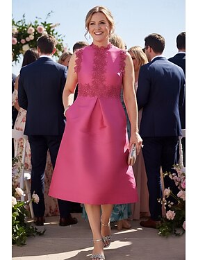 Linea ad A Lunghezza Tè Vestito da Festa Abito da Cocktail Abito da invitata a nozze Abito da cerimonia per signora Senza Maniche Collo Alto Elegante Minimalista Ospite di nozze Laurea Cocktail party