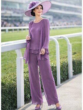 Tuta Completo Pantalone Tre Pezzi Lunghezza alla caviglia Abito da cerimonia per signora Senza Maniche Collo gioiello Elegante Taglie Forti Ospite di nozze Ricevimento di matrimonio Chiffon con Volant
