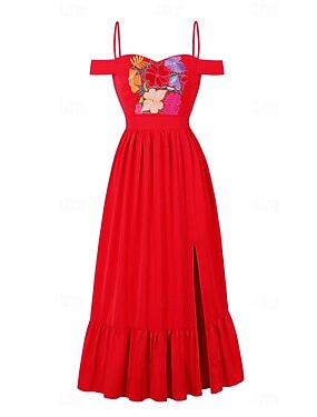 Retrò Vintage Anni 1950 Rockabilly Vestito Abito Swing Senza maniche Fiore / Floreale Costume Per donna Carnevale Mascherata Abbigliamento quotidiano Addio al Nubilato Adulti Vestito